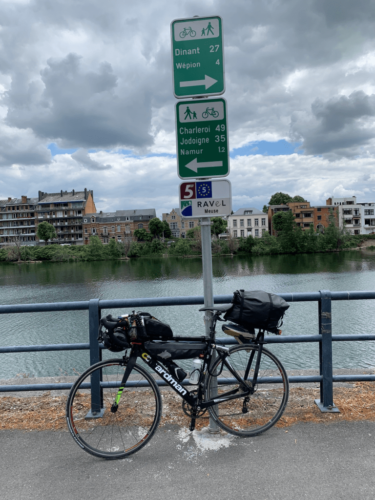 Let’s talk about Google Maps. Google Maps is a fantastic tool, a simple interface, intuitive, it’ll broadly get you wherever you need to go. For driving, it’s difficult to beat. For cycling, however, it tends to deliver its unwitting rider on surfaces ranging from a freshly resurfaced Hermann Tilke (Turn 8, Turkish GP anyone?) motor racing circuit through to the gnarliest single-track. This morning Google has thrown the latter in my direction, resulting in the frame-mounted Kryptonite lock slipping from it’s harness and making a bid for freedom through the spokes. Thankfully no harm done, but I spend a good twenty minutes cursing: Kryptonite, Google and ultimately my poor decision making as I reattach it firmly to it’s proper position. Hours pass and patience exhausted I eventually elect to take a major road to Namur – I’d rather risk the odd close pass than spend another moment being beaten up on these trails. As the speed increases, the mood improves and before I know it, I’ve reached Namur, in the heart of the Belgian Ardennes. Time to gobble down the pre-wrapped lunch and pick up the Eurovelo! Early impressions are pretty good, it’s smooth, well signed and largely segregated to traffic.