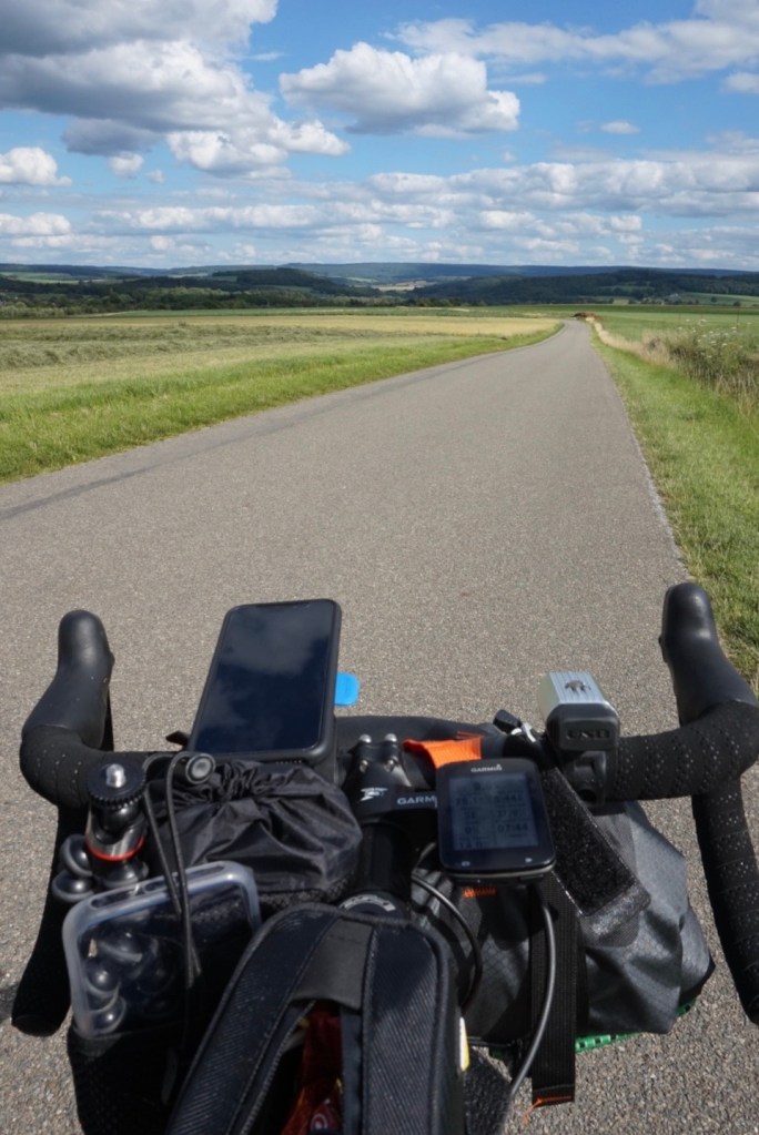 Anna’s (Airbnb) flat was warm, so I found myself waking up super early. As opposed trying to get more sleep, I start riding in the hope of finishing early. I’ve pre-booked accommodation in Saarbrucken, just 100km down the road from Luxembourg in anticipation of easing back into this touring lark. The planned route sweeps through Luxembourgian vineyards to Schengen, past the Schengen monument (memorialising the signing of the Schengen open borders agreement some 30 years ago), before flowing through a hilly series of French towns and into Germany. The conditions are superb, with a fierce tailwind blowing me East, and it seems to be shaping up to be an easy day.
