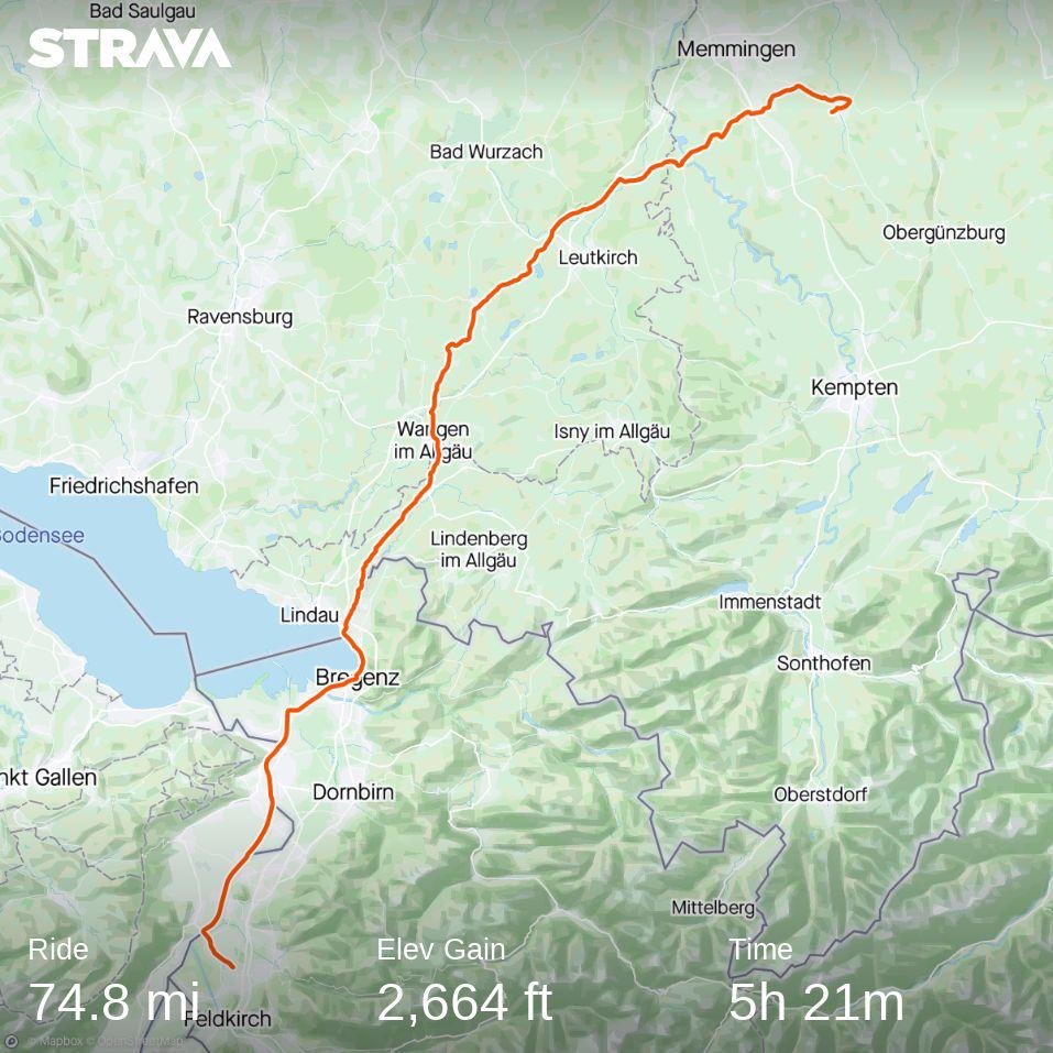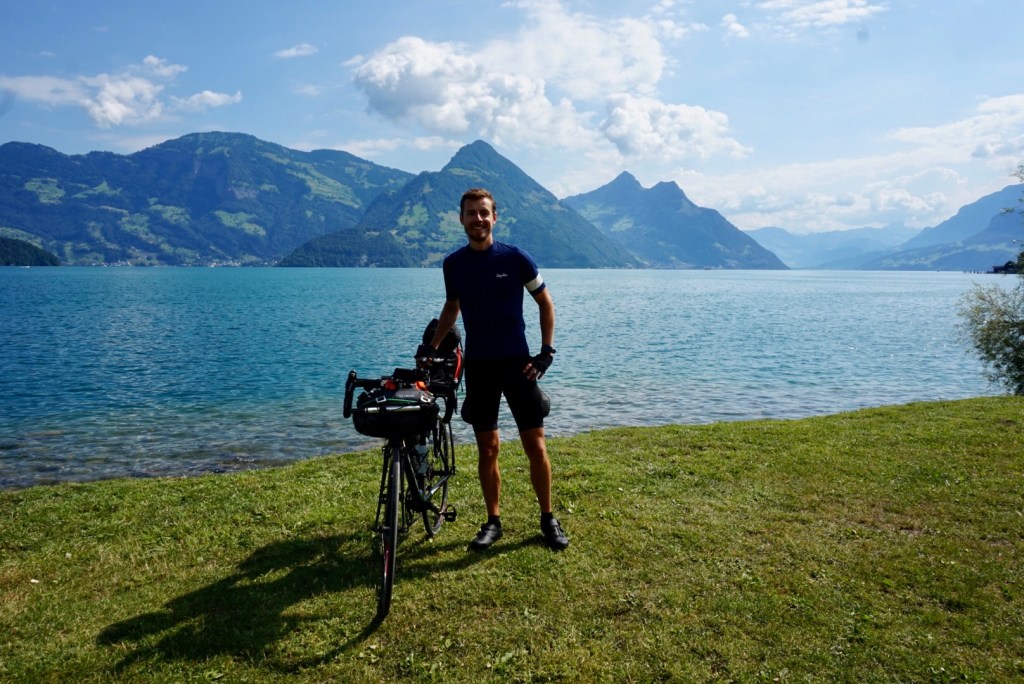 Mercifully, the final 60km is flat and with the roads largely to myself I FaceTime my parents to while away the distance. It’s now, while enjoying the warm evening sun that I catch my first glimpse of The Alps, framed against the blue sky far on the horizon. No longer conceptual, the goal I’ve been striving towards is now very real, and within striking distance. This provides all the motivation required and before too long I arrive at the hotel, ready for a hot shower, cold beer and a long, comfortable sleep.