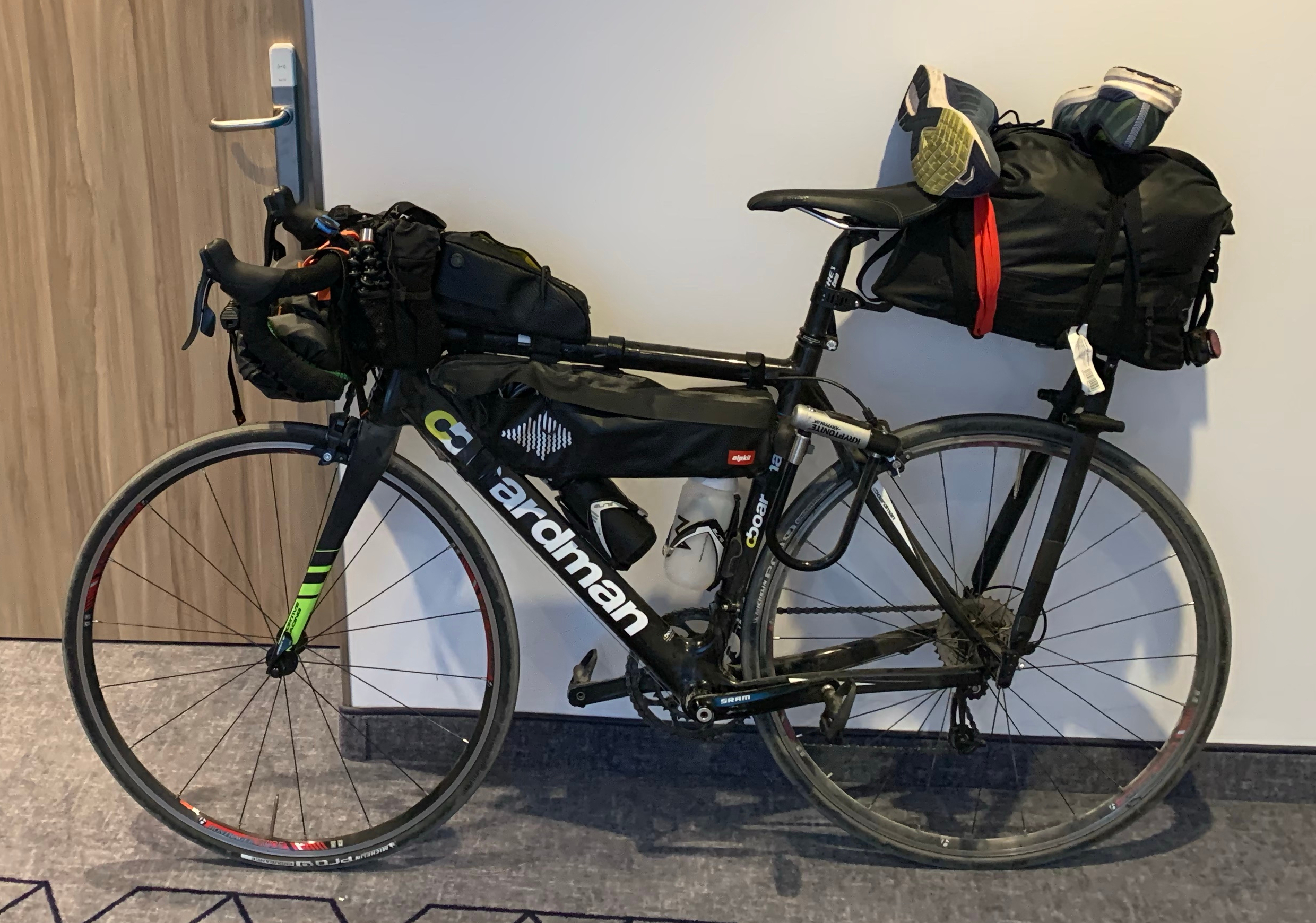 I’ve overspent on some gear, underinvested in others, but have ended up with a package I’m largely satisfied with. My 12-year old carbon road bike has saddled with bags and will be my companion and tourer for the next month or so. Should I have bought a steel tourer, should I have wider tyres? Will that fancy pannier system fail halfway up an Alp?! We’ll find out won’t we!