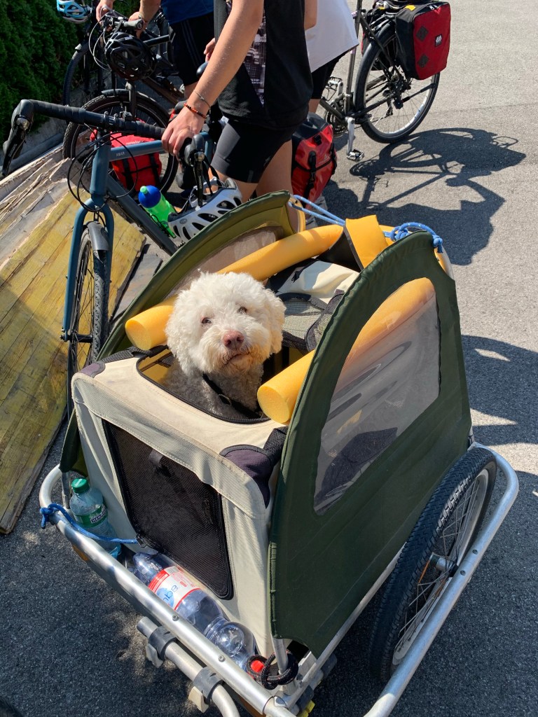 After an incredibly brief daily dose of Google Maps trail roulette, (it’s a wonder the wheels are still in true) I pick up Eurovelo 5 and find it to be an absolutely stunning section of route. Well signposted, silky smooth and fully segregated tarmac running through woodland and along the riverside.