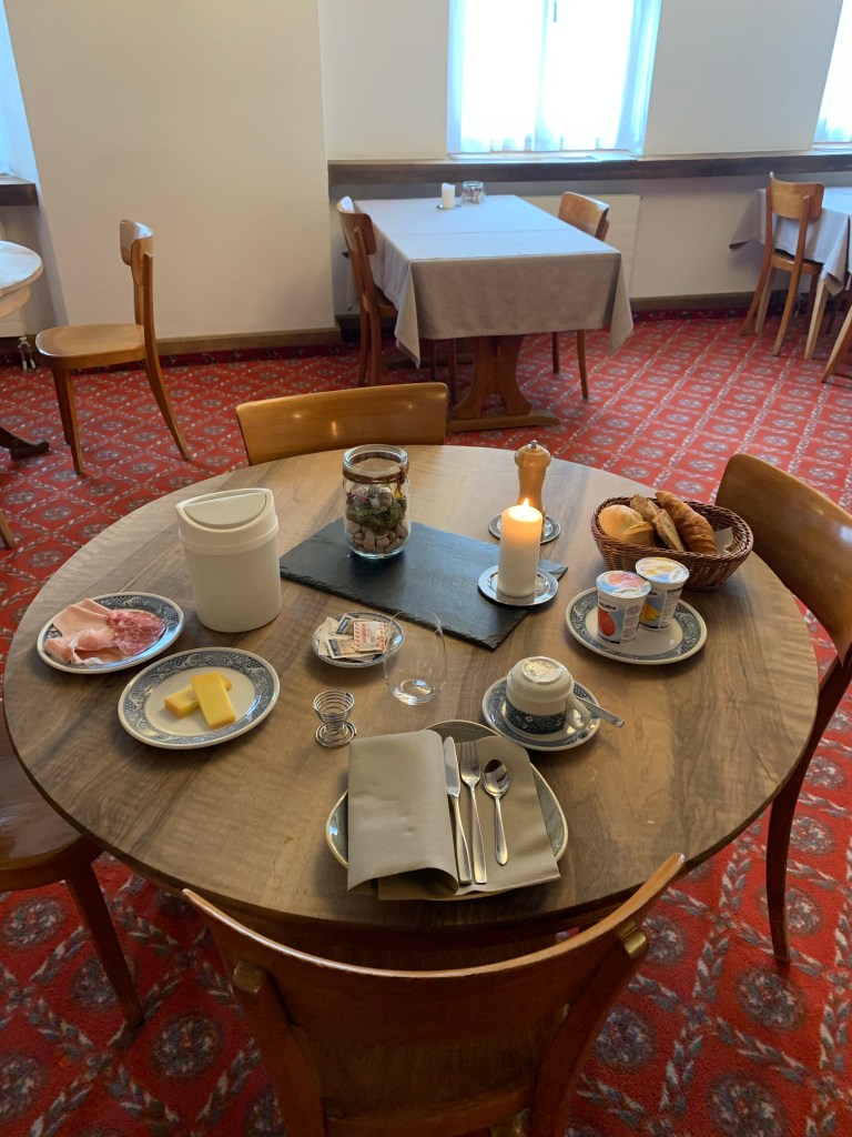 This morning my usual plan of sorting lunch at breakfast has been thwarted by a raft of measures designed to enforce social distancing over breakfast. Picking up a pre-bagged continental breakfast leaves little scope for gratuitous pocket loading, but it’s pleasant sitting on the terrace soaking up the early morning sunshine. The plan today is a fairly simple one, cycle towards Strasbourg and then decide on a preferred route South towards Basle.