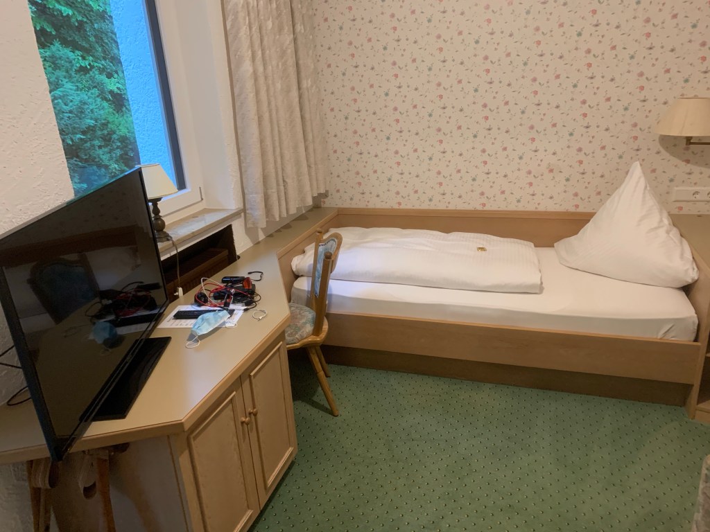 Lunch is fabulously, Germanically beige (Wurst and potato salad). The hours tick by and come 5pm I’ve not chosen any accommodation. I still feel fresh but there’s no reasonable accommodation for miles. I opt for a branded budget hotel, despite the fact it’ll require a 200km day to reach and pedal on. At least this shortens the next day! Upon arrival, maddeningly and with 200km in the legs, there’s a sign on the door saying it’s closed due to Coronavirus and that I should head into town (5km) to stay in their sister hotel. Character building stuff.