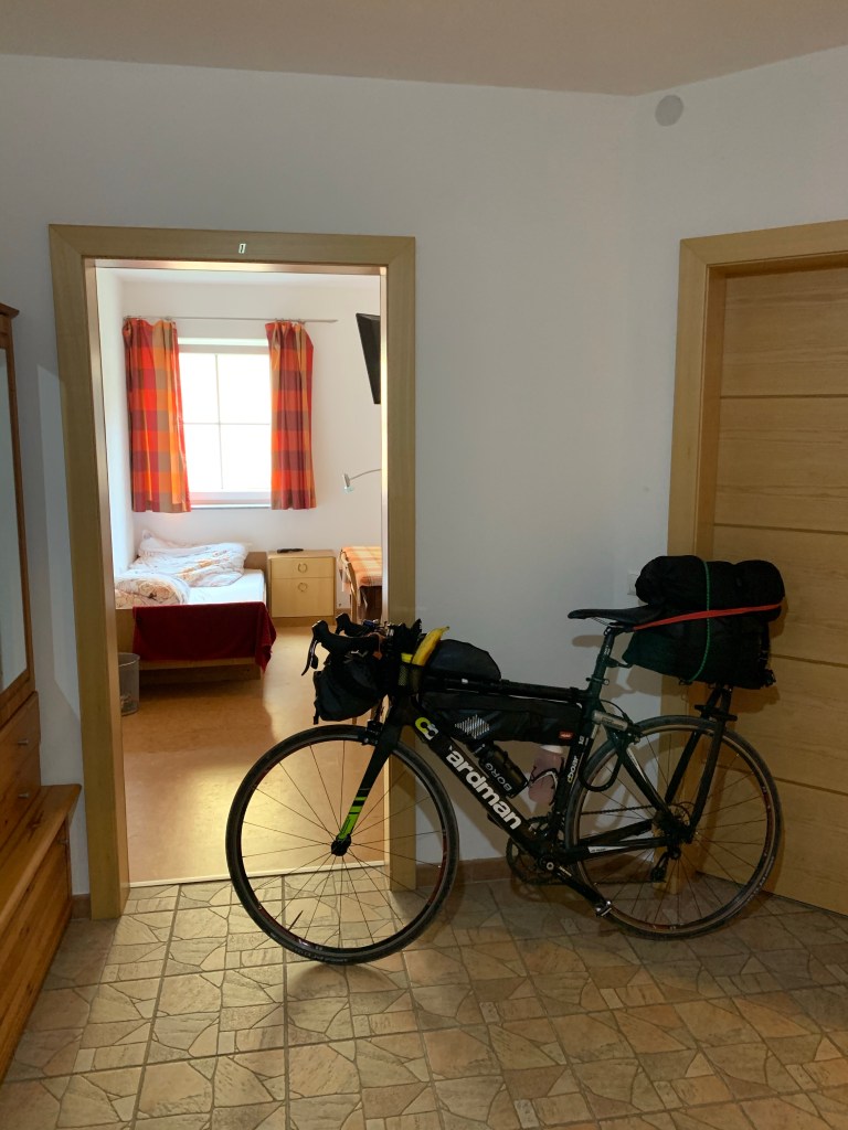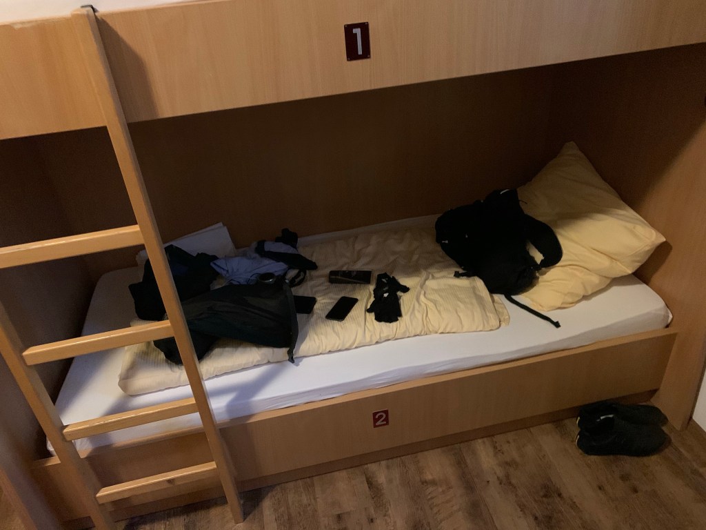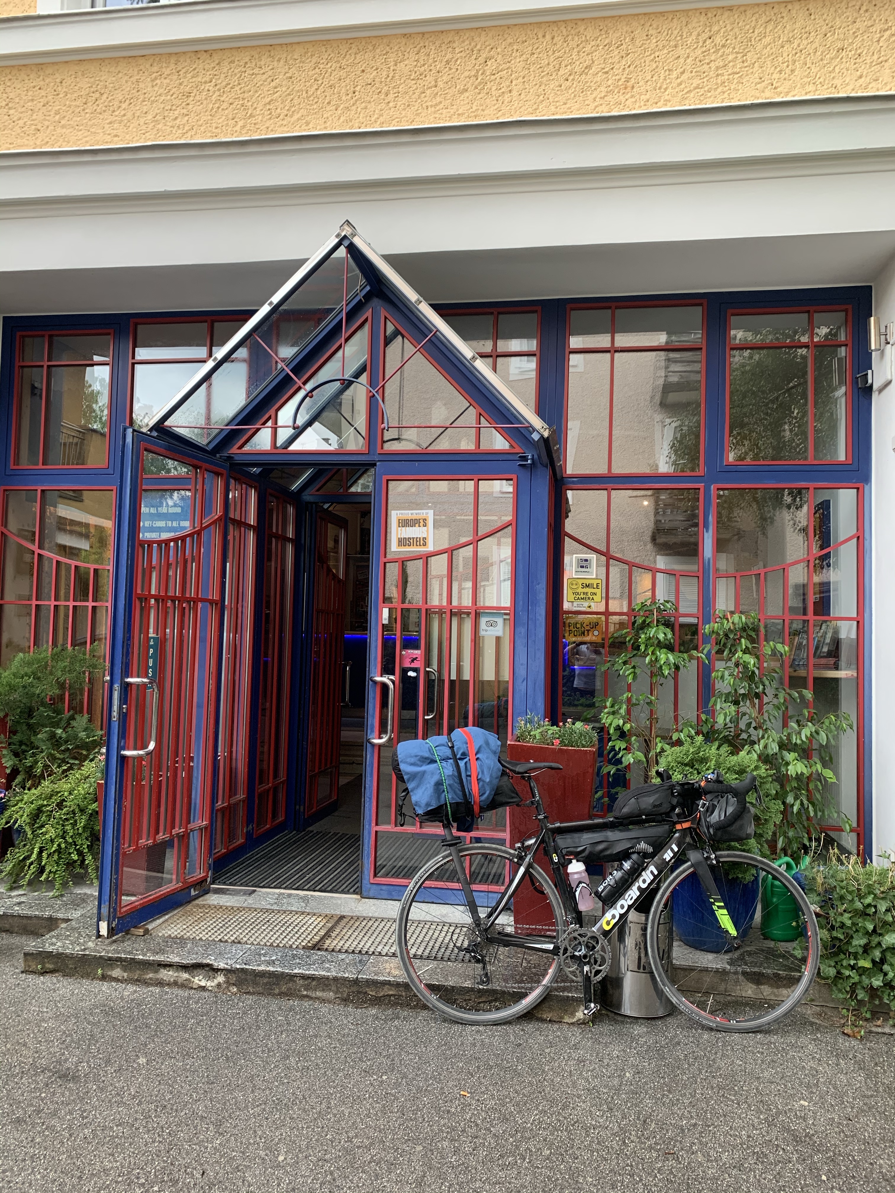 Having overspent on accommodation in Munich, I’ve opted to stay in a hostel tonight, repeating an experience I’ve not had since being a backpacker some years ago. I assume I’ll be so tired from exploits on the bike that sleep will come easily. I needn’t have worried. Sharing bathrooms was a faff and it was a pain not being able to splay out all my kit, but on balance I enjoyed the company. They’ve modernised substantially in recent years with clean rooms, key card operated lockers and importantly safe bike storage.