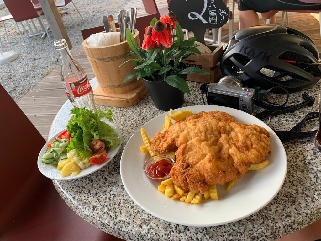 The kilometres sail by, I find a (truly) gigantic schnitzel (this is Austria after all) and settle in for a comfortable night at the well-equipped accommodation. 107 miles today yet feeling fresh. Will need to do the same again to reach Vienna. Can hardly wait.