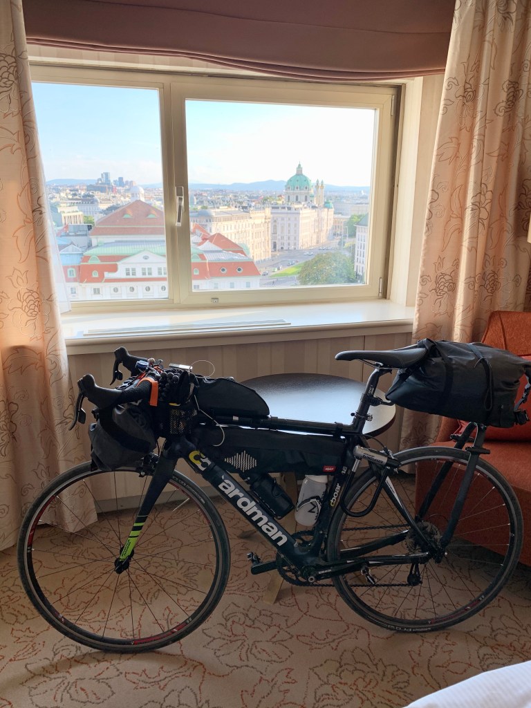 No matter how wonderful the path, the true appeal of today’s ride is the fact it terminates in Vienna, a magnificent and historic city. Having not visited before, I’ve scheduled a couple of rest days to enjoy the coffee houses, visit the galleries and explore the palaces. After a mammoth 100+ miles in the saddle, the tree-lined banks of the Danube eventually give way to buildings signalling the approach of a major city.