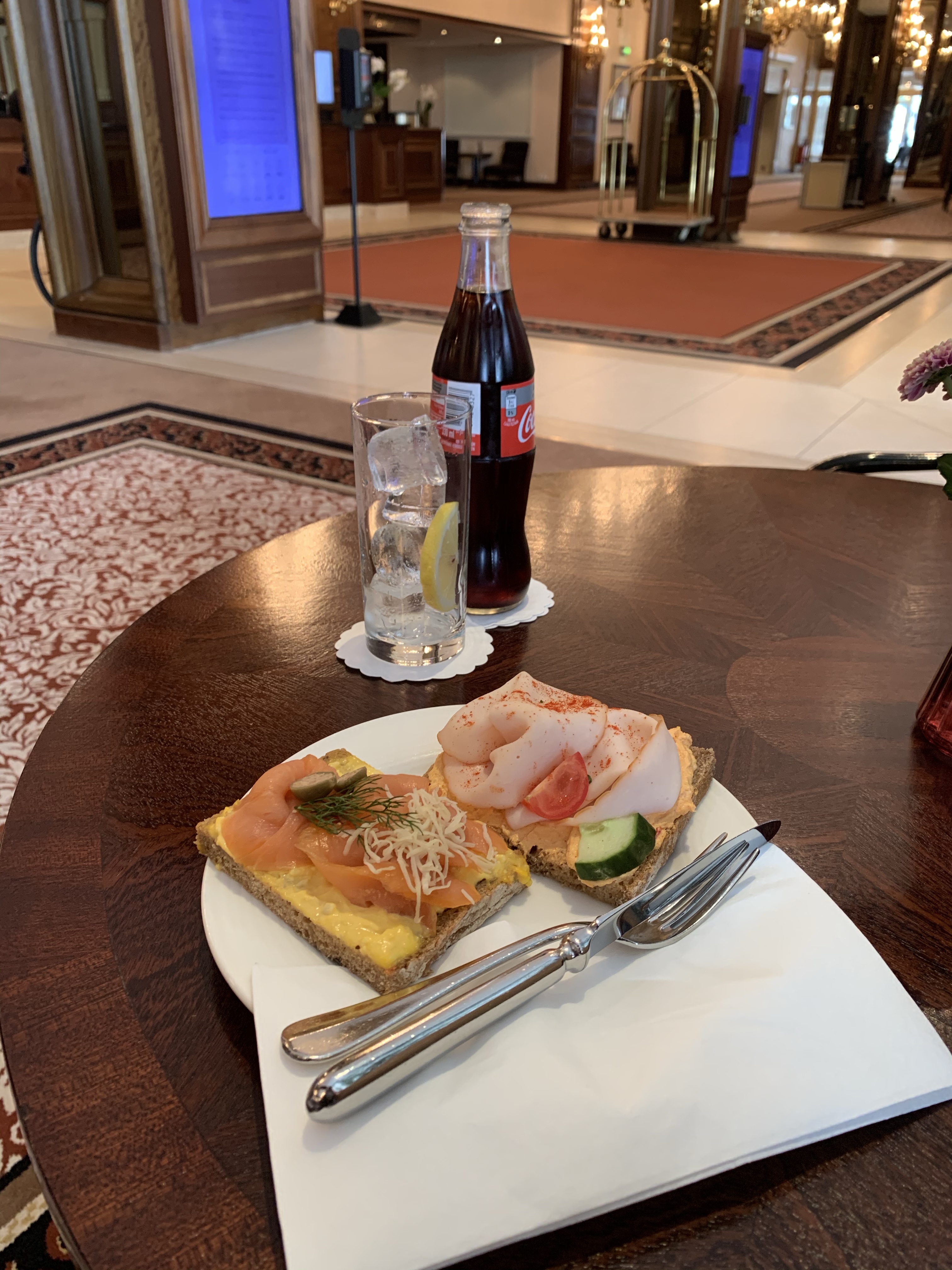 An unexpected silver (or ahem, plastic) lining of this whole Covid situation is that each item of this morning’s hotel breakfast has been painstakingly wrapped in cellophane. While undoubtedly a complete ball ache of a chore for whomever the task fell upon, it has saved me the task of wrapping up a jersey lunch, fabulous.